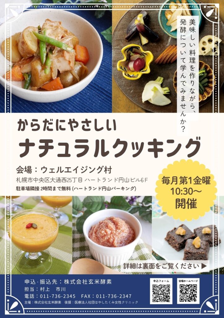 昨年より毎月第1金曜日に当ビル6階にて株式会社玄米酵素さん主催にてナチュラルクッキングを開催しており、皆様に大変ご好評いただいています
