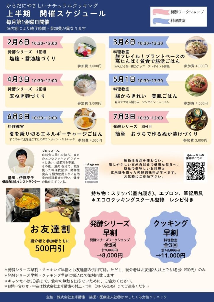 参加ご希望の方は、はやしたくみ女性クリニックもしくは株式会社玄米酵素(担当:村上・市川)までお電話にてお問い合わせください