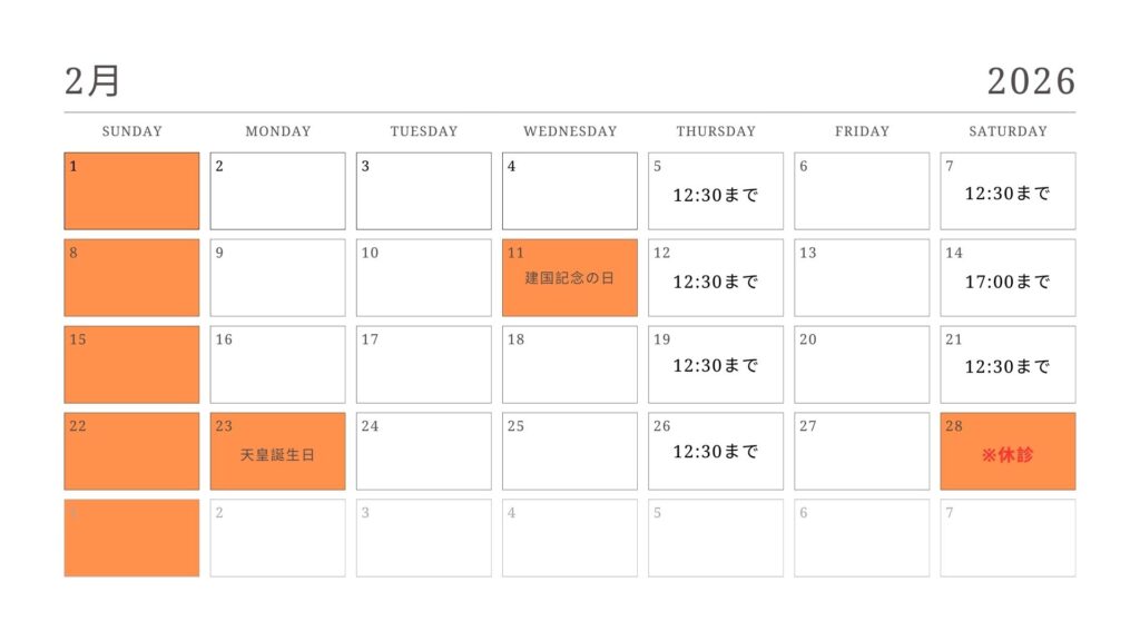 2026年2月休診のお知らせ